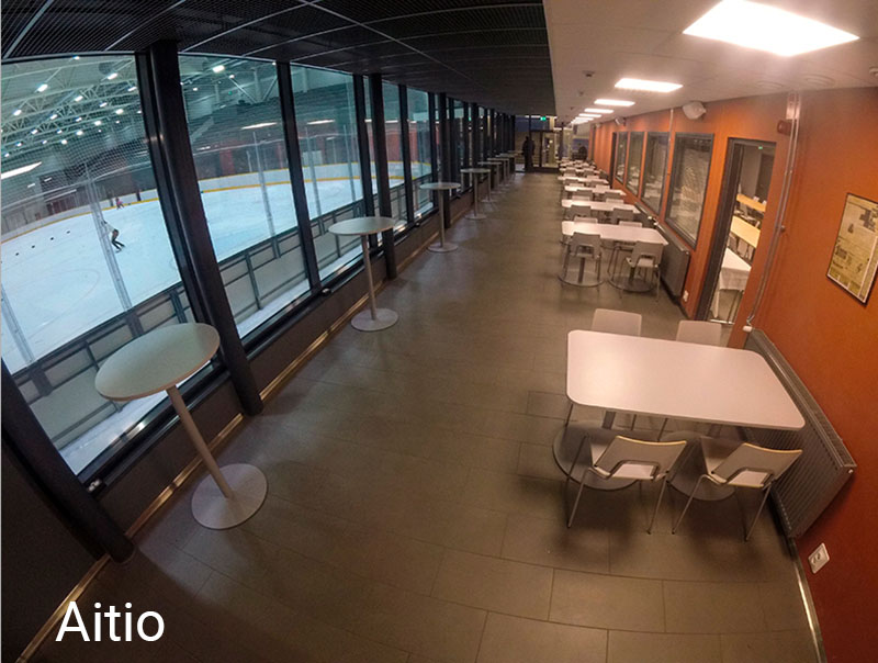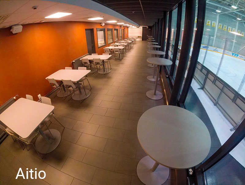 Tesoman Aitio on tilana ainutlaatuinen, sillä sen suuret ikkunat avautuvat suoraan jääkiekkokaukaloon. Tila on suorakaiteen muotoinen ja sisältää kuuden hengen ruokapöytiä sekä kolmen hengen pystypöytiä. Tila toimii hyvin seurusteluun, ruokailuun tai epäviralliseen kokoustamiseen.