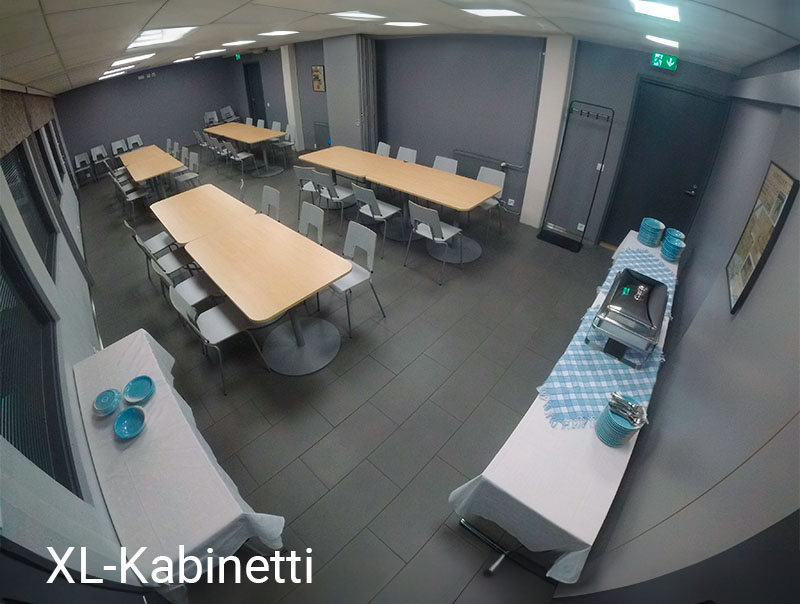 XL Kabinetti on tilava kokoustila, joka on jaettavissa liikuteltavalla väliseinällä kahteen osaan. Pöydissä voi istuen ruokailla 32 henkilöä, mutta henkilömäärää on mahdollista kasvattaa tuolein sekä seisten. XL Kabinetti tarjoaa rauhalliset ja miellyttävät puitteet ruokailuun sekä kokousten järjestämiseen.